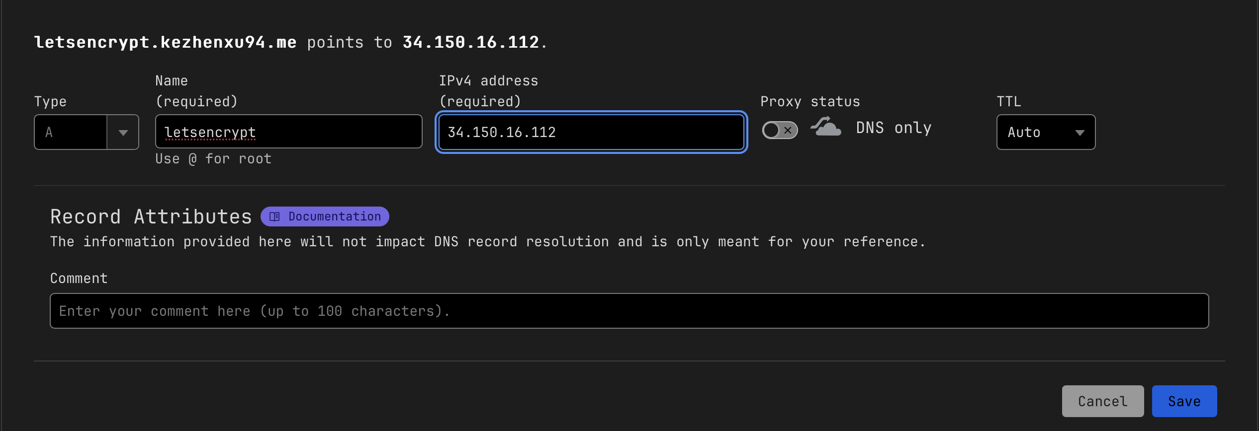 In this tutorial, I'm going to use the domain letsencrypt.kezhenxu94.me as an example, you should replace it with your own domain name.
